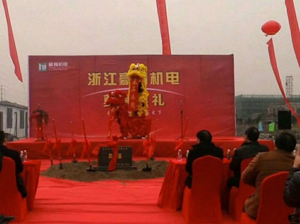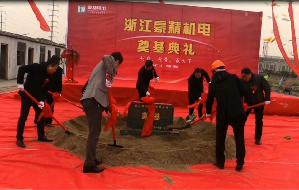 2017年1月9日上午,在浙江海宁尖山新区隆重举行“浙江豪精自动华设备生产线项目”开工庆典。活动现场欢声笑语、气氛热烈、鞭炮齐鸣,公司董事长亲临现场与尖山新区有关部门领导、嘉宾、施工方代表、公司中层以上负责人百余人参加了奠基仪式,这个项目的开工建设将是豪精机电发展历程中的又一个里程碑,浙江豪精机电将被打造成品种齐全,配套完善的生产基地,公司占地40亩,主题建筑包括办公大楼、生产车间、质量中心、成品库、动力配电等。