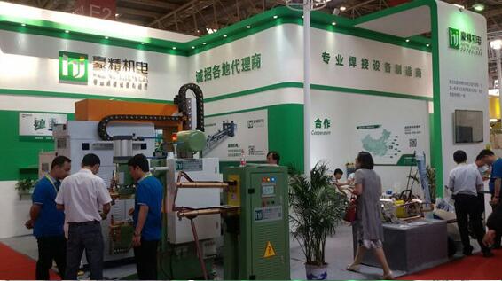 6月焊接“英雄会---第二一届北京.埃森焊接与切割展览会于6月14日在北京盛大开幕,作为世界两大专业焊接展之一,埃森展吸引着国内外焊接“高手”赴会切磋。今年的埃森展在展会规模逐步扩大的同时,一如既往地保证展会的质量及水准,焊接高手如云,各类焊接设备让专业观众应接不暇,豪精品牌焊机也吸引了众多专业观众驻足,豪精机电设计工程师专业的讲解和先进的焊接设备,得到了专业观众的认可和大量好评。在展会四天时间里,每天不断有客户现场签单,参展的展品SMD-40标准机和螺母输送机也让客户直接签单拉走,可见展会现场的火爆程度。